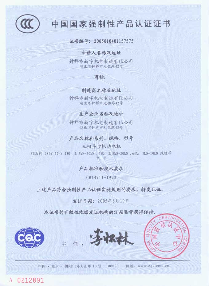 CQC中国国家强制性产品认证证书