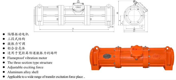 VLBL系列法兰式隔爆振动电机是新研发的一种铝合金壳体的新型 VLBL系列法兰式隔爆振动电机 振动电机具有如下特点:其一是结构合理、质量轻,参振质量大幅度降低;其二是电机通过法兰安装在筛箱侧板上,改变电机螺栓的受力状态,以消除振断螺栓的现象,从而提高振动机械的可靠性。